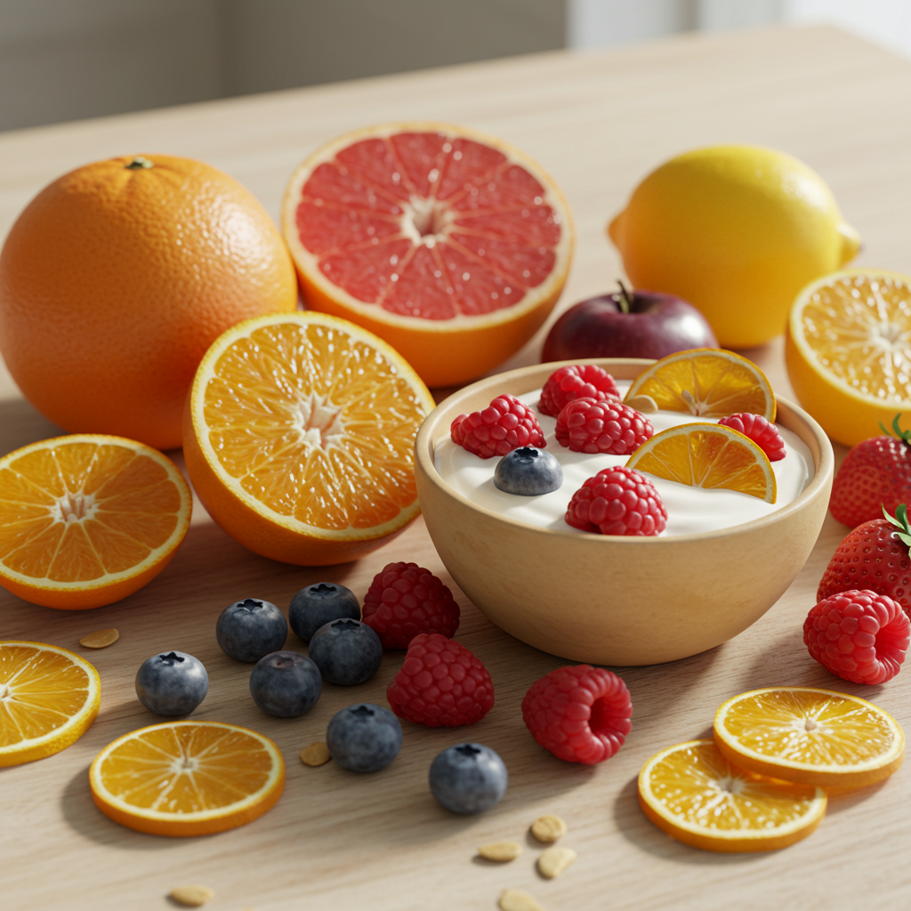감귤류 과일은 비타민 C가 풍부하여 면역력 증진에 탁월하며, 항산화 물질이 가득한 베리류는 세포 보호에 도움을 줍니다. 아이들이 좋아하는 형태로 변형하여 꾸준히 섭취하게 해주세요!